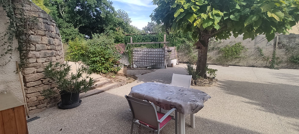 Il donne sur un parking privé ou vous pouvez bien évidemment y garer votre voiture et y prendre aussi vos repas car une table et 4 chaises sont a votre disposition.